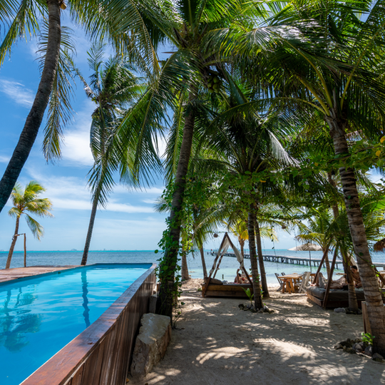 A large dock extends over the water, perfect for jumping in for a swim or setting off on a paddleboard. With soft sand beneath your feet and palm trees all around, it’s the perfect setting to embrace the island atmosphere. Stick around for sunset - the view from the dock is incredible.