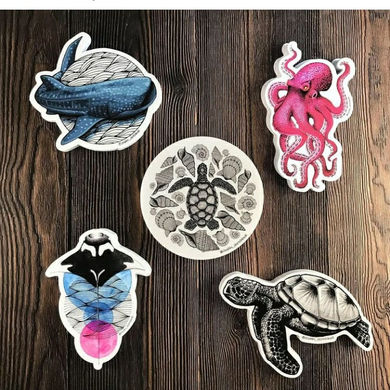 His work includes original pieces, prints, stickers, bookmarks, postcards, T-shirts, and more. Custom pieces can be picked up in Isla Mujeres or shipped for an additional cost. All of his other products are generally available for local pickup, but large orders can be shipped for an extra fee.