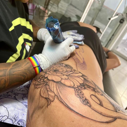 Ixchel Tattoos is a family-run tattoo studio located in Isla Mujeres’ mid-island neighborhood of Salinas, just down the street from Kash Keken Chuc and near Gym Tonic. Established in 2014, the studio is led by longtime island residents Yamile Aguirre and Gio Chan, who bring years of experience and a personal approach to every piece they create.