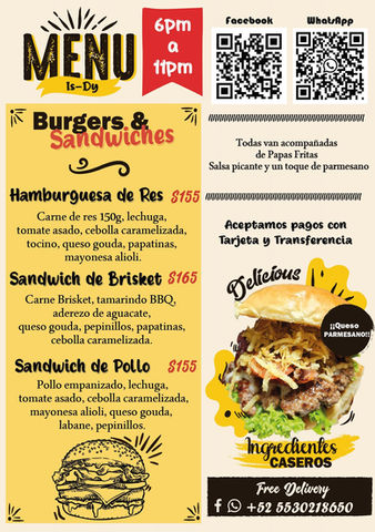 IsDy is a delivery-only burger and sandwich spot on Isla Mujeres known for bold flavors and quality homemade ingredients. The small menu features a beef burger, chicken sandwich, and brisket sandwich, all served on brioche bread and paired with fries, a touch of parmesan, and house-made hot sauce on the side.