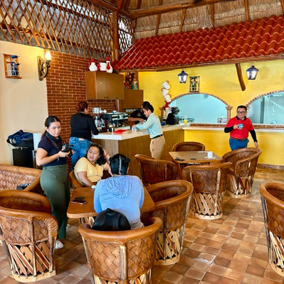 The lunch menu expands into classic Mexican comfort dishes such as tacos, burritos, quesadillas, fajitas, nachos, and baguettes, offering both lighter options and more filling meals. The restaurant has a relaxed atmosphere with a small, brightly colored space topped by a palapa roof and simple décor that reflects Mexican culture throughout. It is a family-run restaurant, with attentive service and a calm setting that works well for a slow breakfast or an easy midday meal in the center of town.