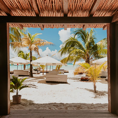 Located on the white sand of Isla Mujeres’ famous beach, Playa Norte is the Oceanvs Beach Club by Na Balam. This gorgeous beach club, and beachfront restaurant on North Beach, has large and comfortable beach beds available to use.