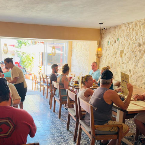 Make your table reservation at Rusticco Restaurante & Bar for a romantic dinner, anniversary date, dinner with friends or family, or a celebration or special occasion while visiting Isla Mujeres. This is the perfect spot for dinner in an intimate setting, with a warm atmosphere. You can sit inside in the air-conditioned restaurant, or outside for some streetside dining. They are open for breakfast, lunch, and dinner.