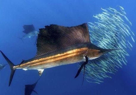 Your day will begin early in the morning with an approximately 1-2 hour-long cruise to the east on the Caribbean. Your captain and guide will be on the lookout for seabirds hovering over the area where sailfish are hunting and diving into the baitball. Once a group of sailfish is found, you will be given the opportunity to swim with them using your snorkel, mask, and life jacket. You will witness an incredible hunt as the sailfish work together to eat the sardines in the baitball. This is a unique experience and a great day trip during your visit to the island.