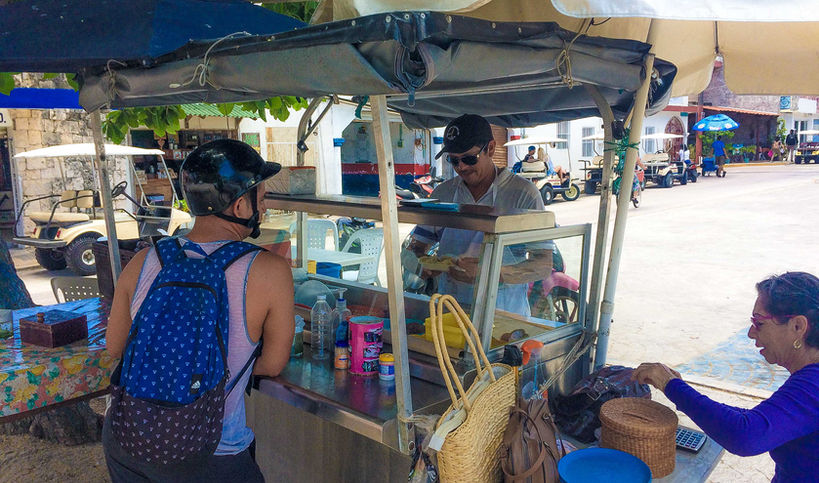 Taco's de Ferry, named so due to their previous location right next to the Ultramar ferry on Isla Mujeres, is a delicious late breakfast or lunchtime taco spot open from Monday to Saturday. Their new location, in front of Café Isla (which is beside Casa Cultara in downtown Isla Mujeres, is a local, family run taco stand. Very popular amongst island locals, they are open until 3pm, but usually they run out before that, providing a different selection of fillings each day for your tacos or tortas! With options including breaded chicken or pork, egg with chaya (Mayan spinach), egg with meat, pork rinds in red sauce, relleno negro with pork and chicken (black stuffing, like a stew, a delicious, regional choice) as well as many other choices. Ask them what they have on offer and get a selection of different tacos to see which is your favorite ...and don't forget to get there early before they run out!
