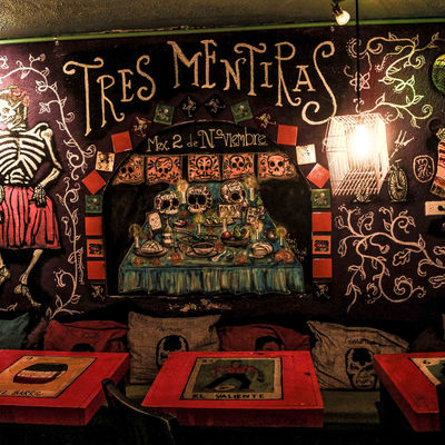 Tres Mentiras - Art bar. Mezcaleria. Restaurant. This hip and popular spot has a great vibe, live music, delicious Mexican food, and artisanal cocktails - that you can only find right here at Tres Mentiras (Three Lies).